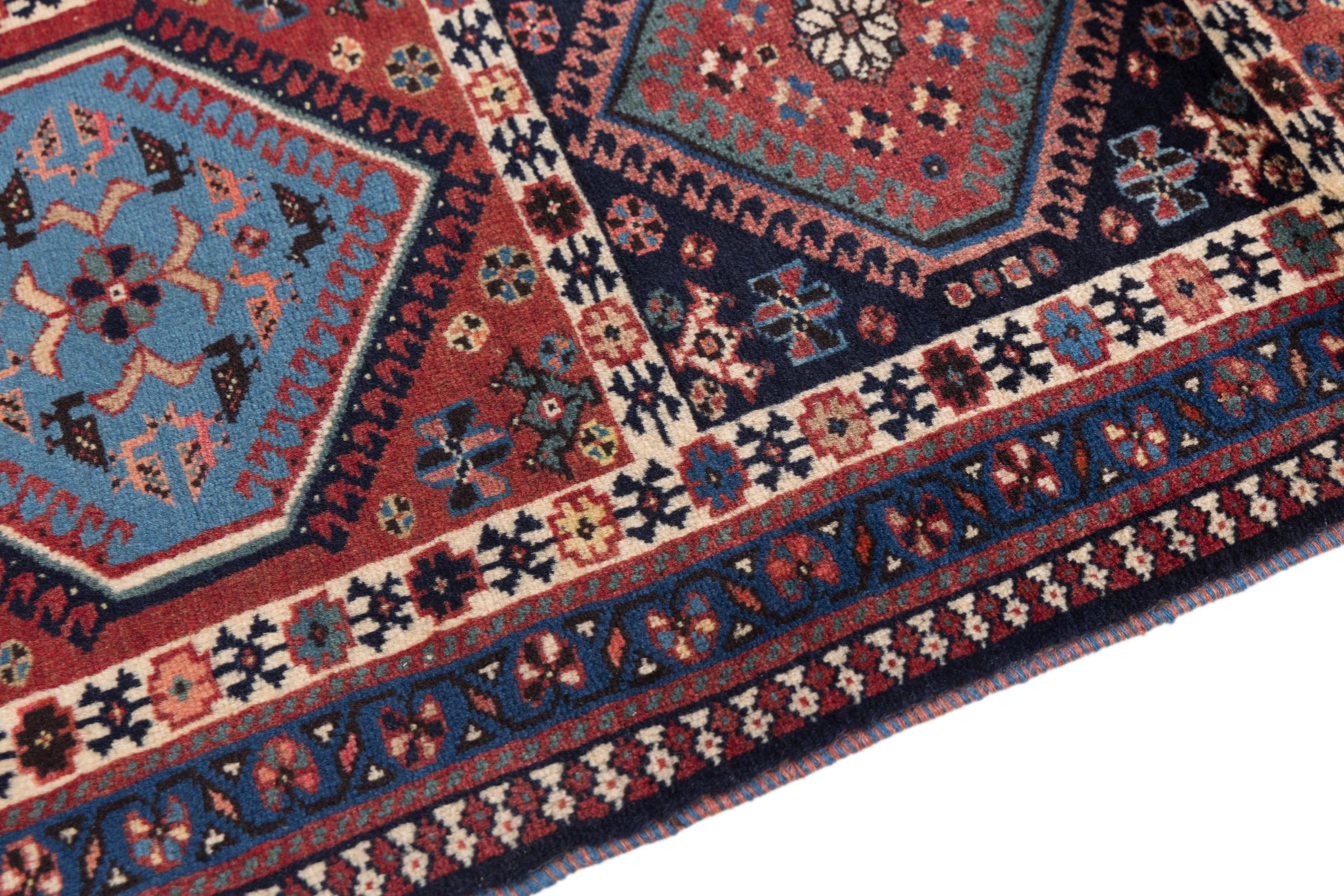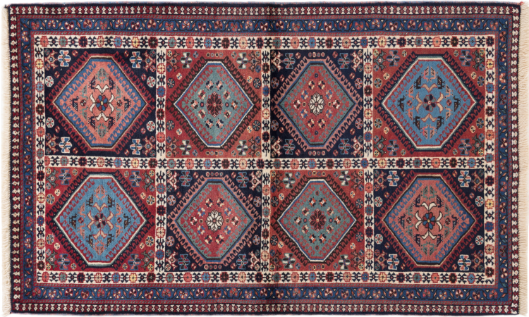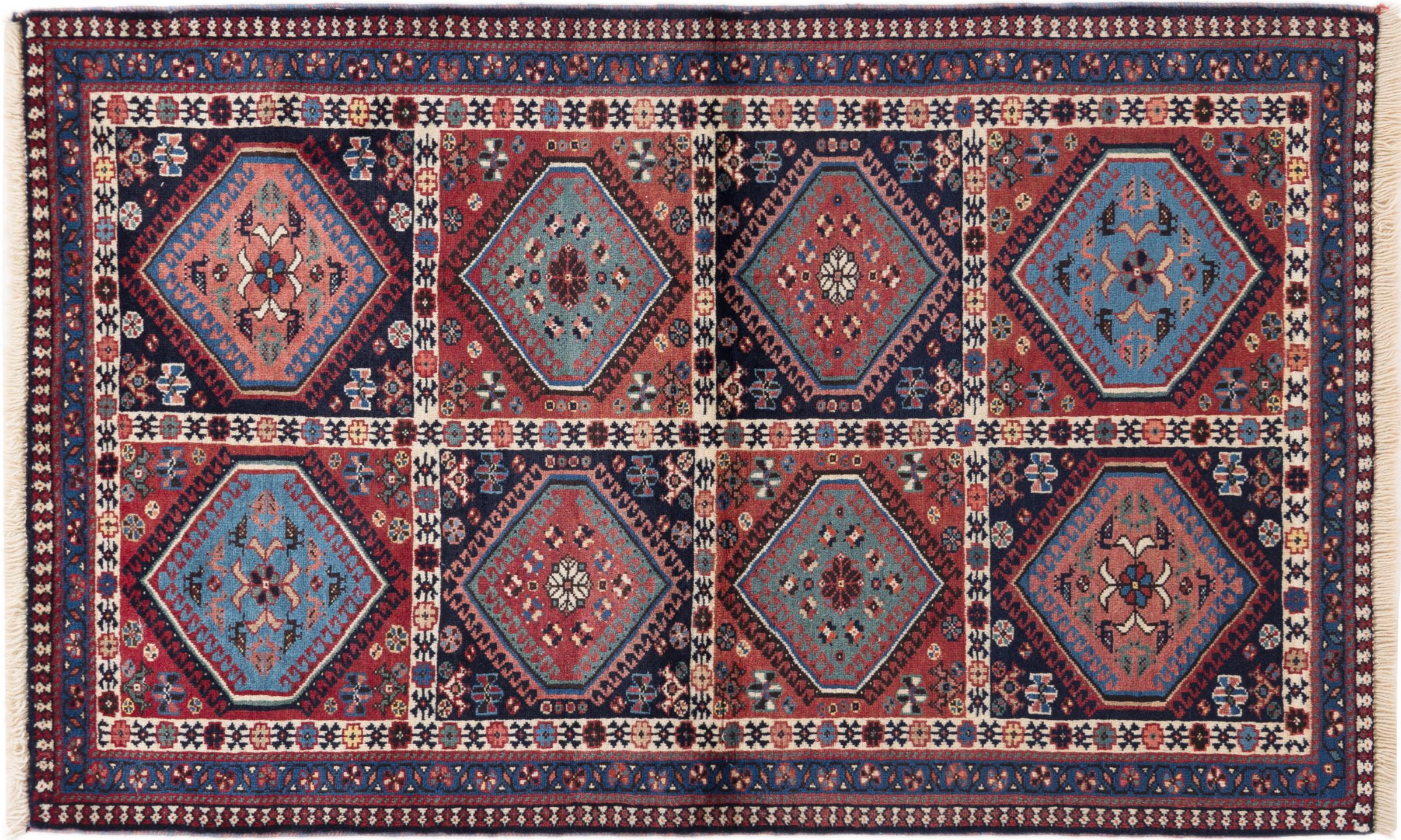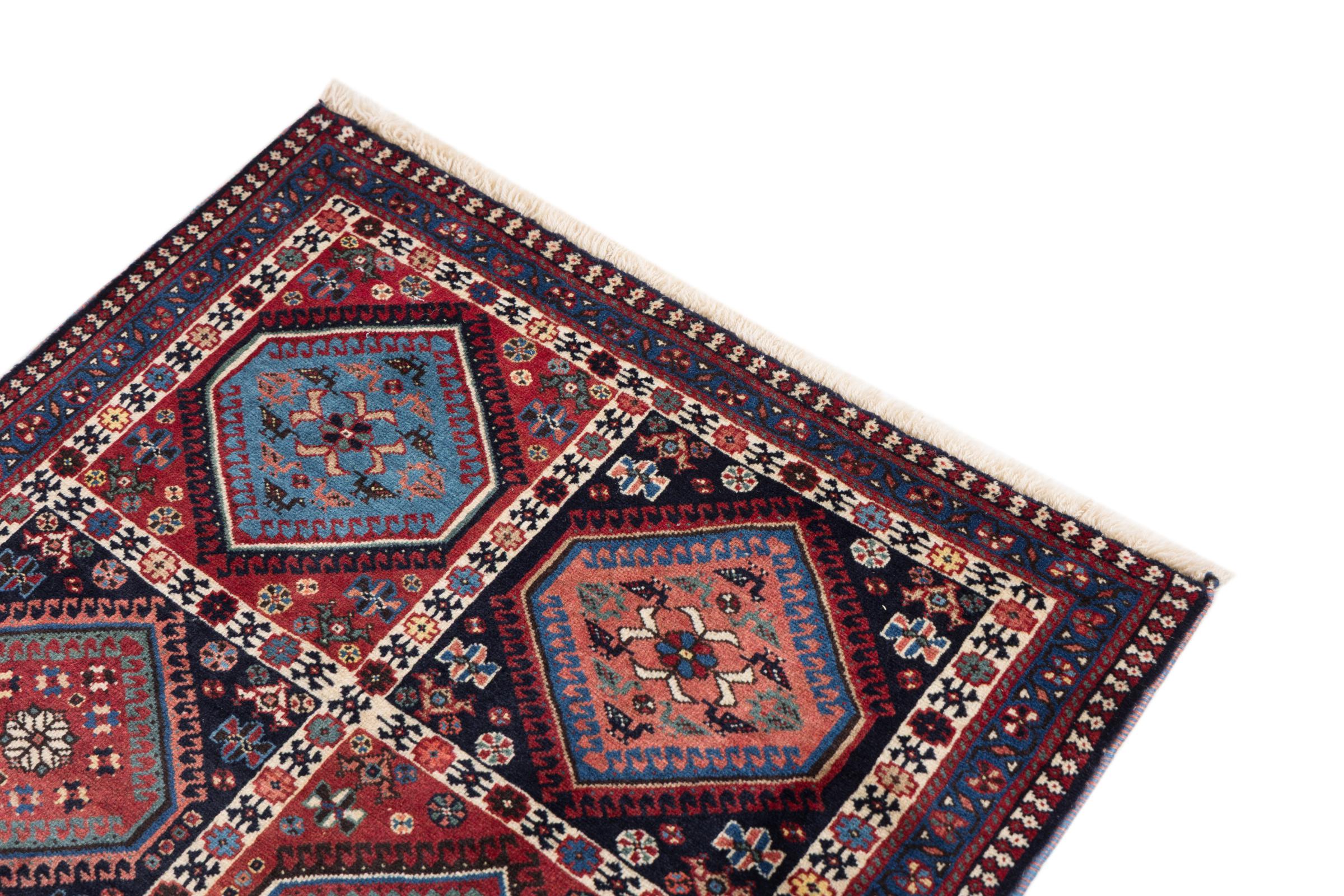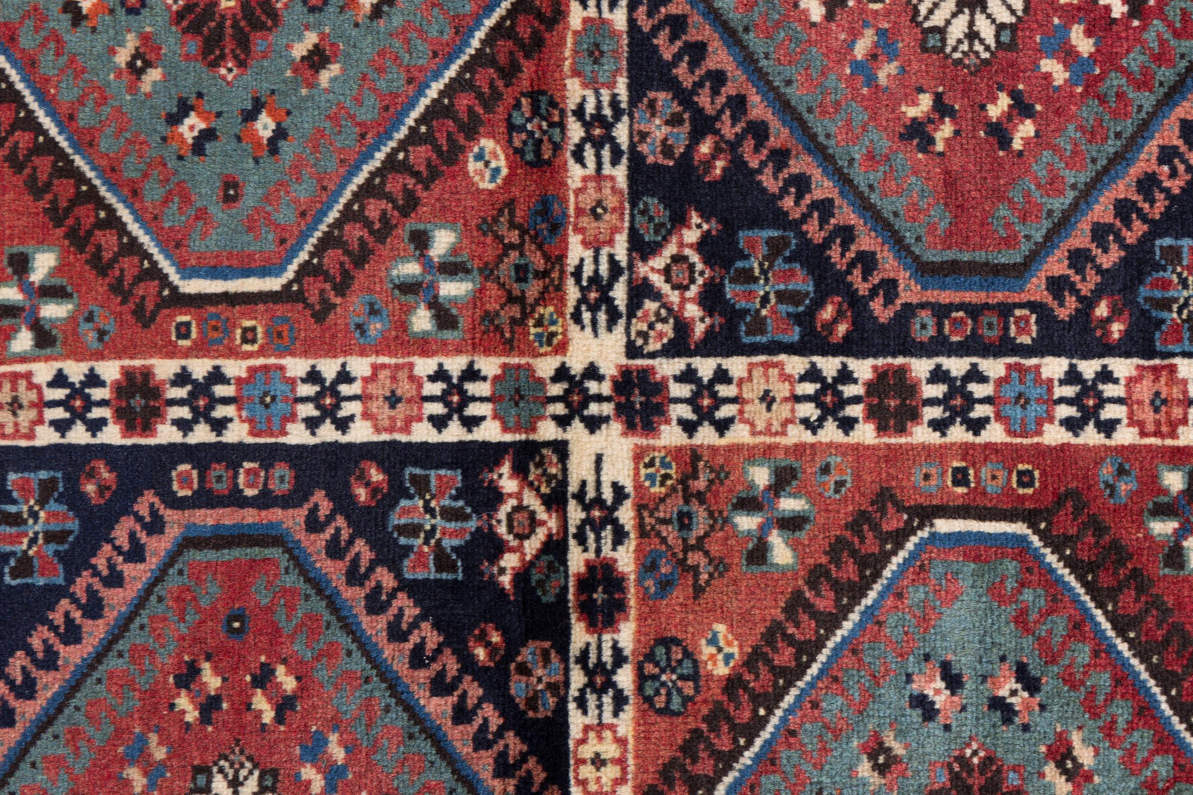Tradicionalmente hecha a mano en Yalameh, esta alfombra persa es una bella representante de su gremio. Las formas geométricas son intemporales y seguirán siendo un diseño muy popular durante muchos años. Particularmente especiales en Yalameh son los diamantes, como en esta alfombra.