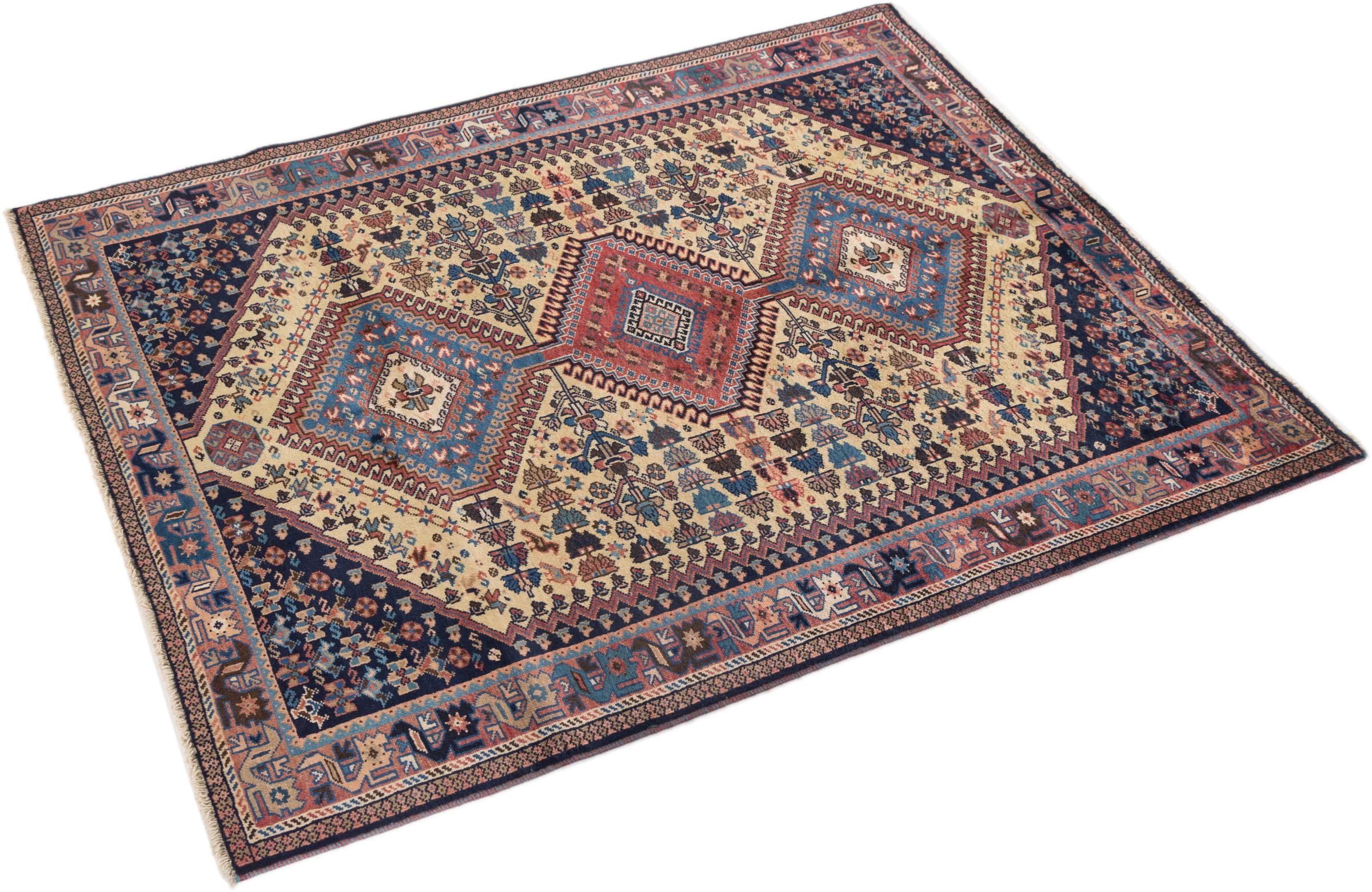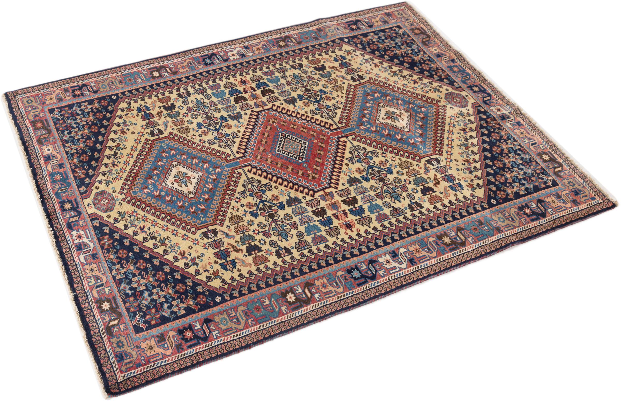 Tradicionalmente hecha a mano en Yalameh, esta alfombra persa es una bella representante de su gremio. Las formas geométricas son intemporales y seguirán siendo un diseño muy popular durante muchos años. Particularmente especiales en Yalameh son los diamantes, como en esta alfombra.