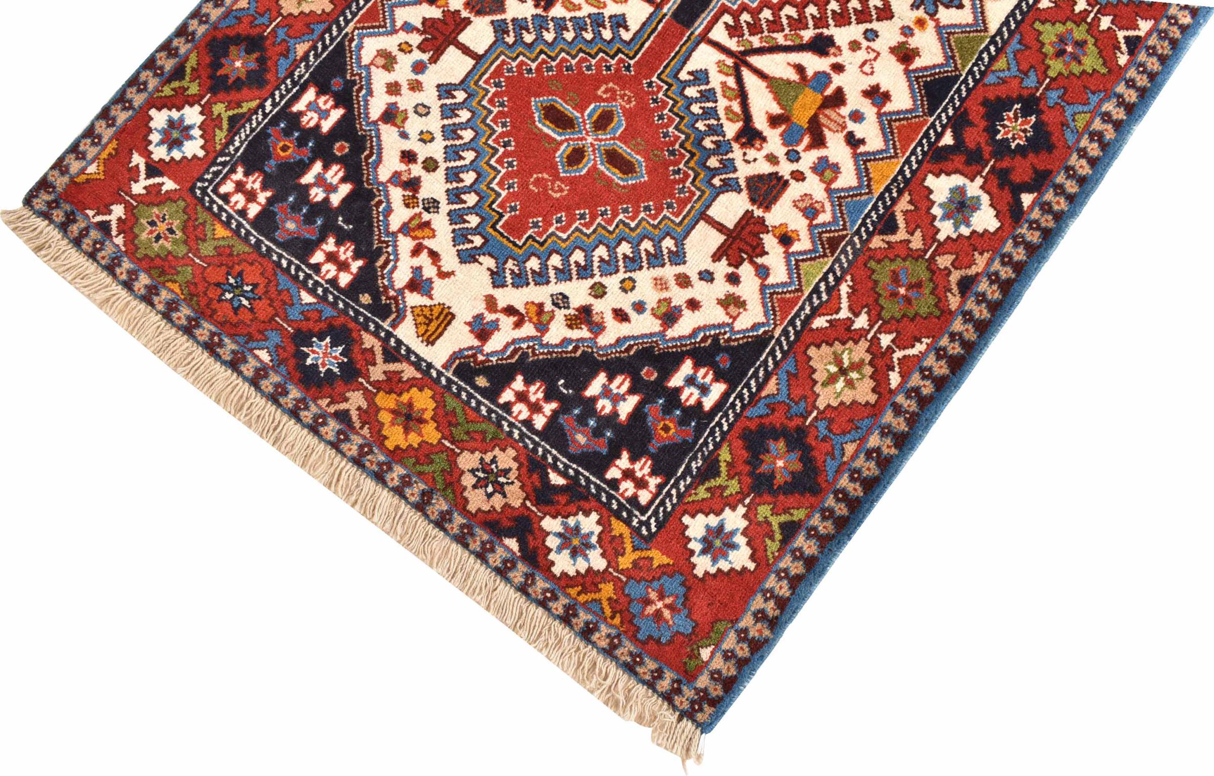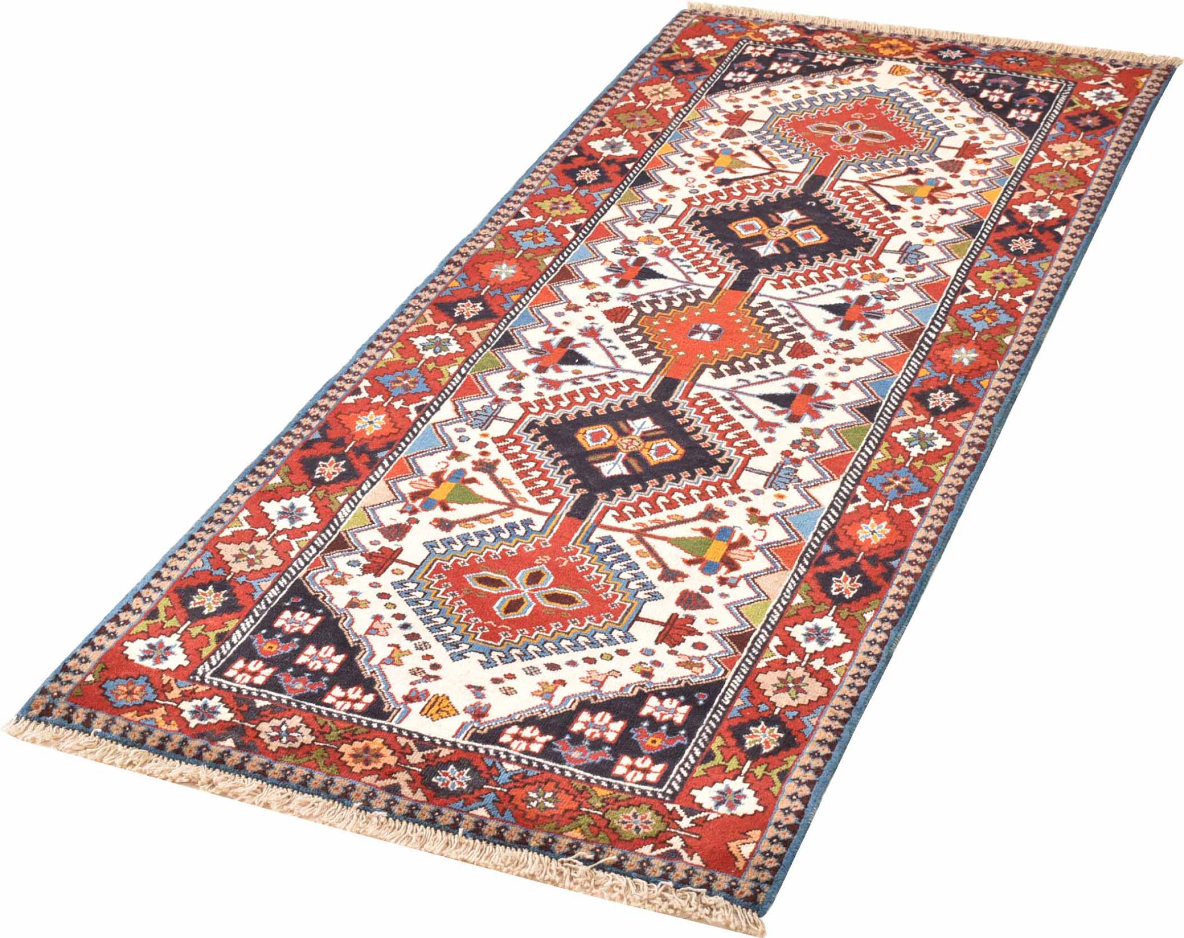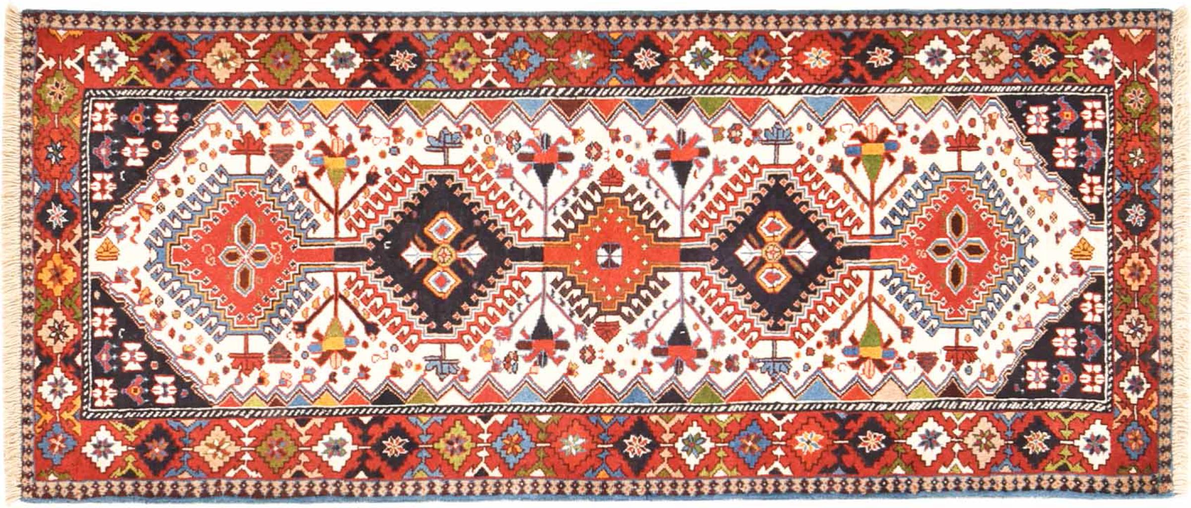 Tradicionalmente hecha a mano en Yalameh, esta alfombra persa es una bella representante de su gremio. Las formas geométricas son intemporales y seguirán siendo un diseño muy popular durante muchos años. Particularmente especiales en Yalameh son los diamantes, como en esta alfombra.