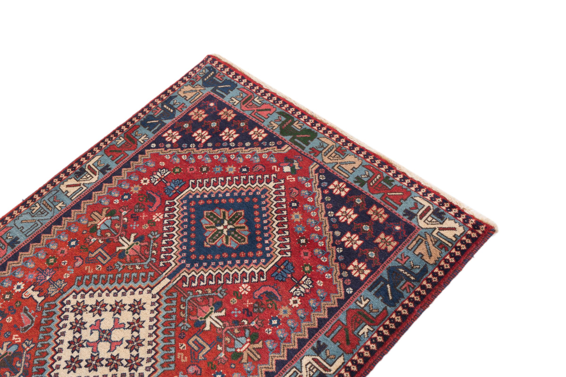 Tradicionalmente hecha a mano en Yalameh, esta alfombra persa es una bella representante de su gremio. Las formas geométricas son intemporales y seguirán siendo un diseño muy popular durante muchos años. Particularmente especiales en Yalameh son los diamantes, como en esta alfombra.