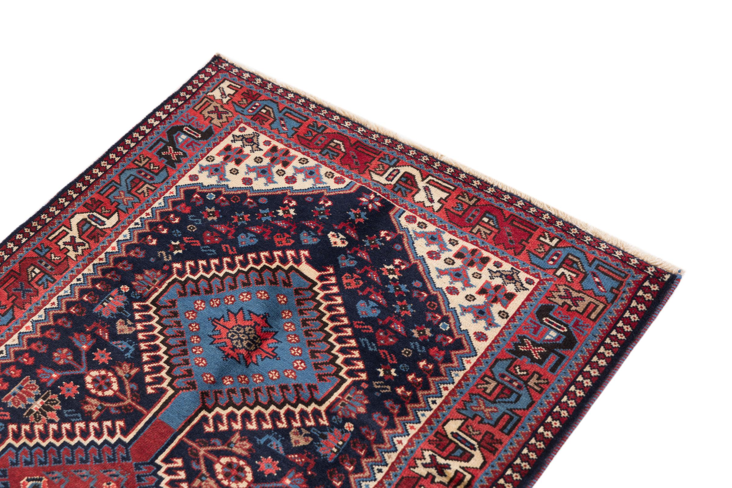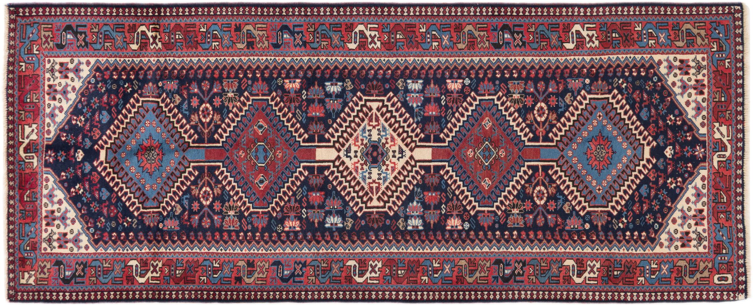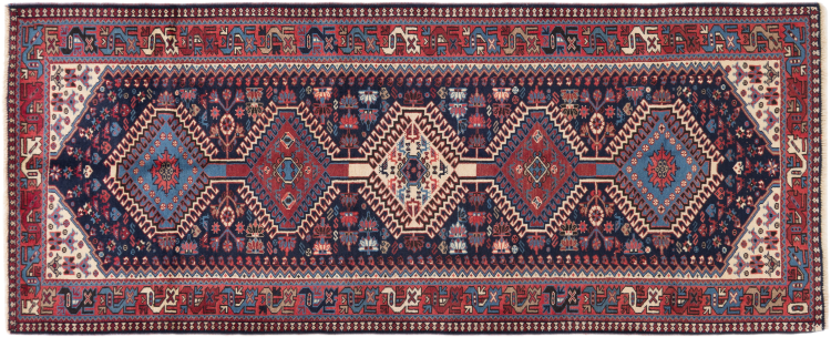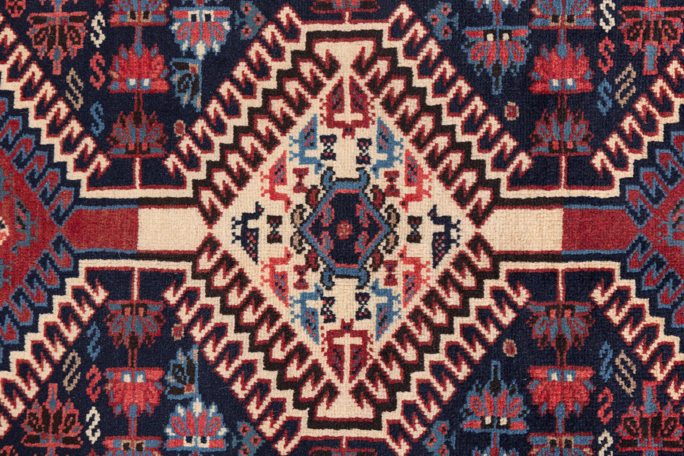 Tradicionalmente hecha a mano en Yalameh, esta alfombra persa es una bella representante de su gremio. Las formas geométricas son intemporales y seguirán siendo un diseño muy popular durante muchos años. Particularmente especiales en Yalameh son los diamantes, como en esta alfombra.