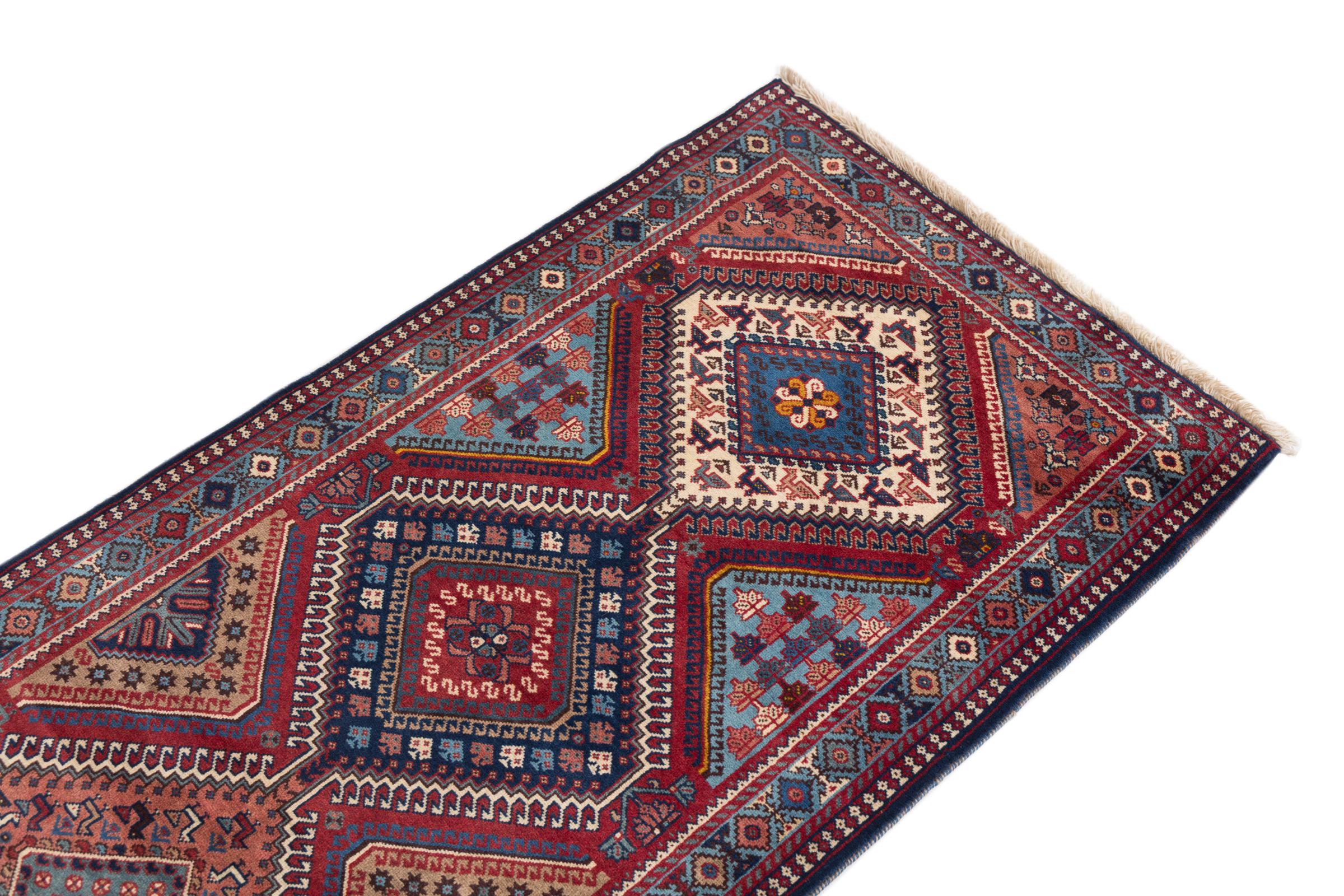 Tradicionalmente hecha a mano en Yalameh, esta alfombra persa es una bella representante de su gremio. Las formas geométricas son intemporales y seguirán siendo un diseño muy popular durante muchos años. Particularmente especiales en Yalameh son los diamantes, como en esta alfombra.