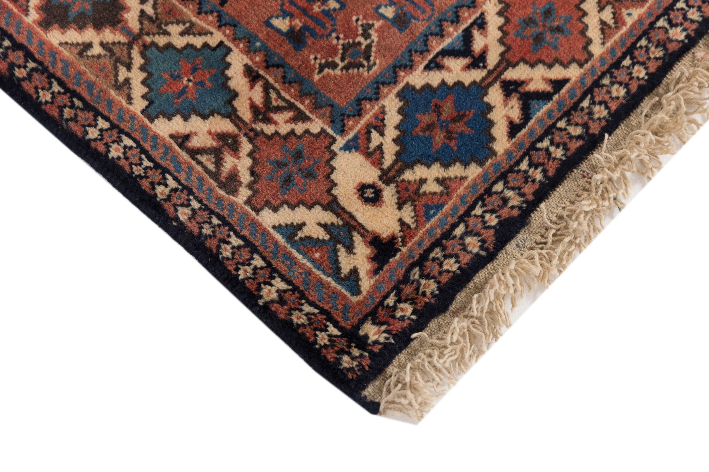 Tradicionalmente hecha a mano en Yalameh, esta alfombra persa es una bella representante de su gremio. Las formas geométricas son intemporales y seguirán siendo un diseño muy popular durante muchos años. Particularmente especiales en Yalameh son los diamantes, como en esta alfombra.