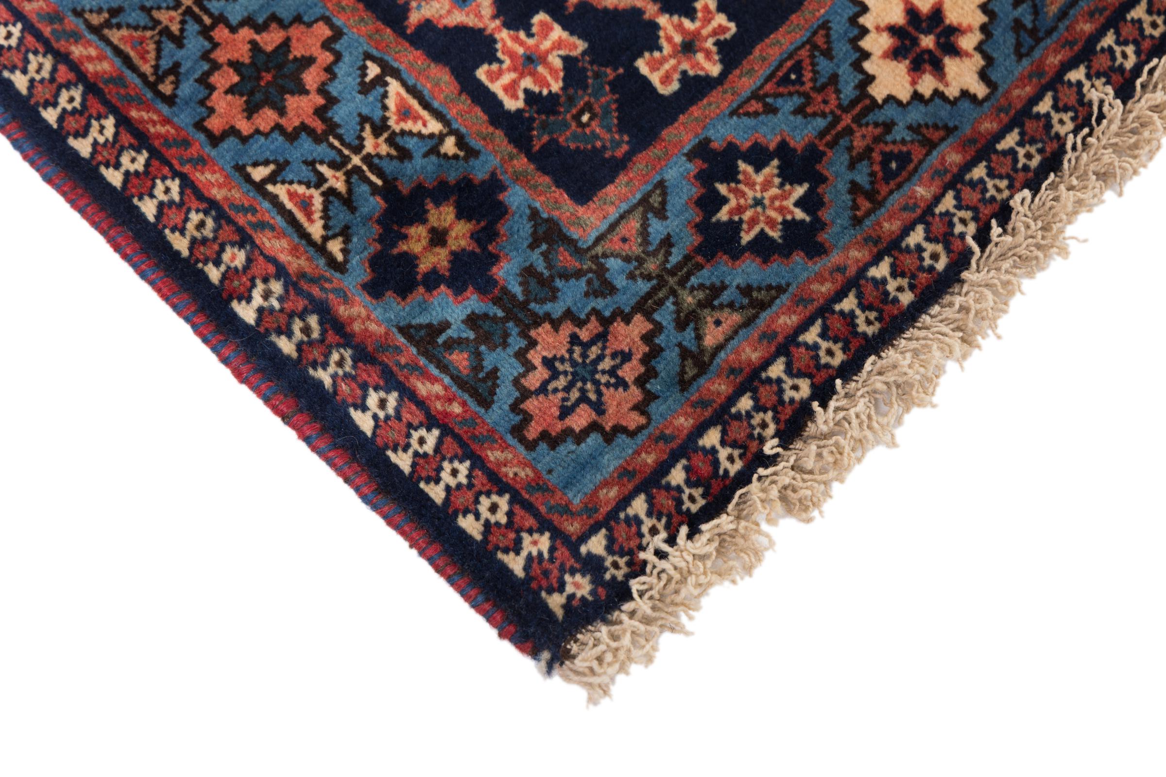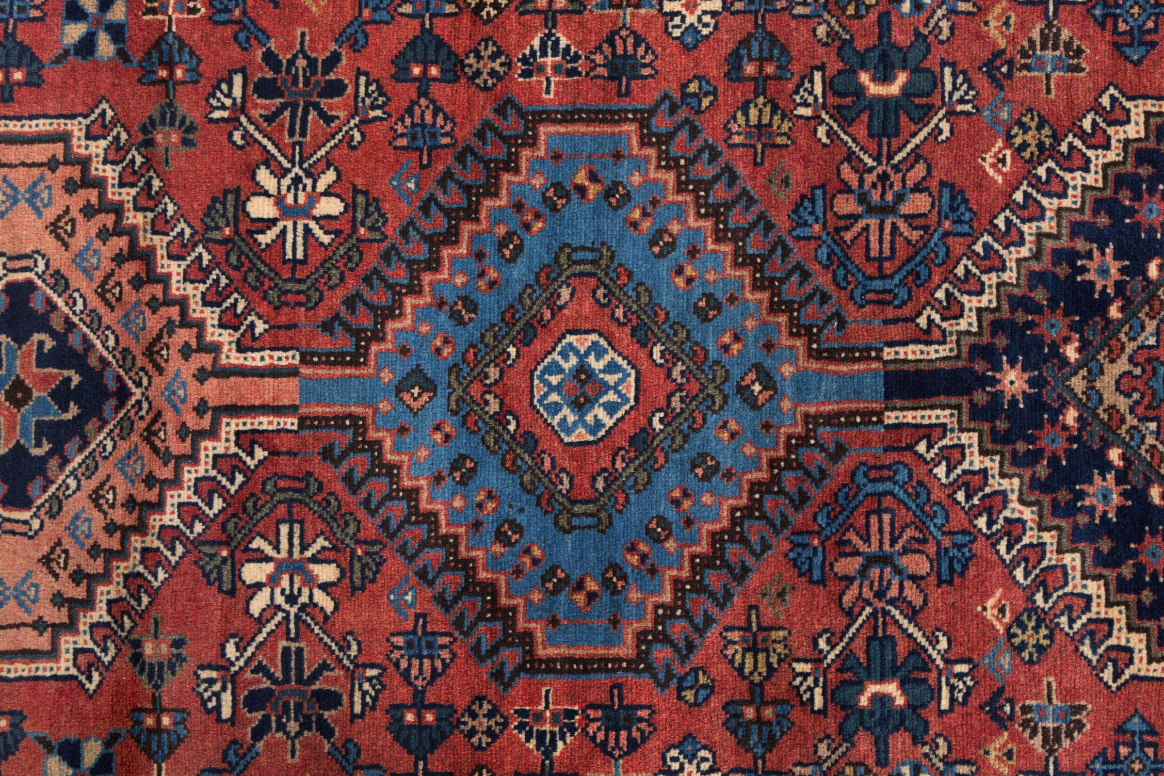 Tradicionalmente hecha a mano en Yalameh, esta alfombra persa es una bella representante de su gremio. Las formas geométricas son intemporales y seguirán siendo un diseño muy popular durante muchos años. Particularmente especiales en Yalameh son los diamantes, como en esta alfombra.