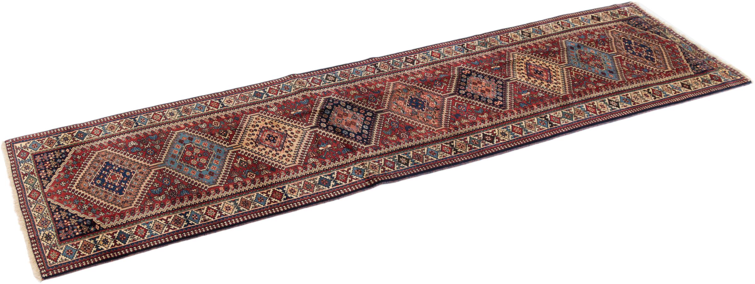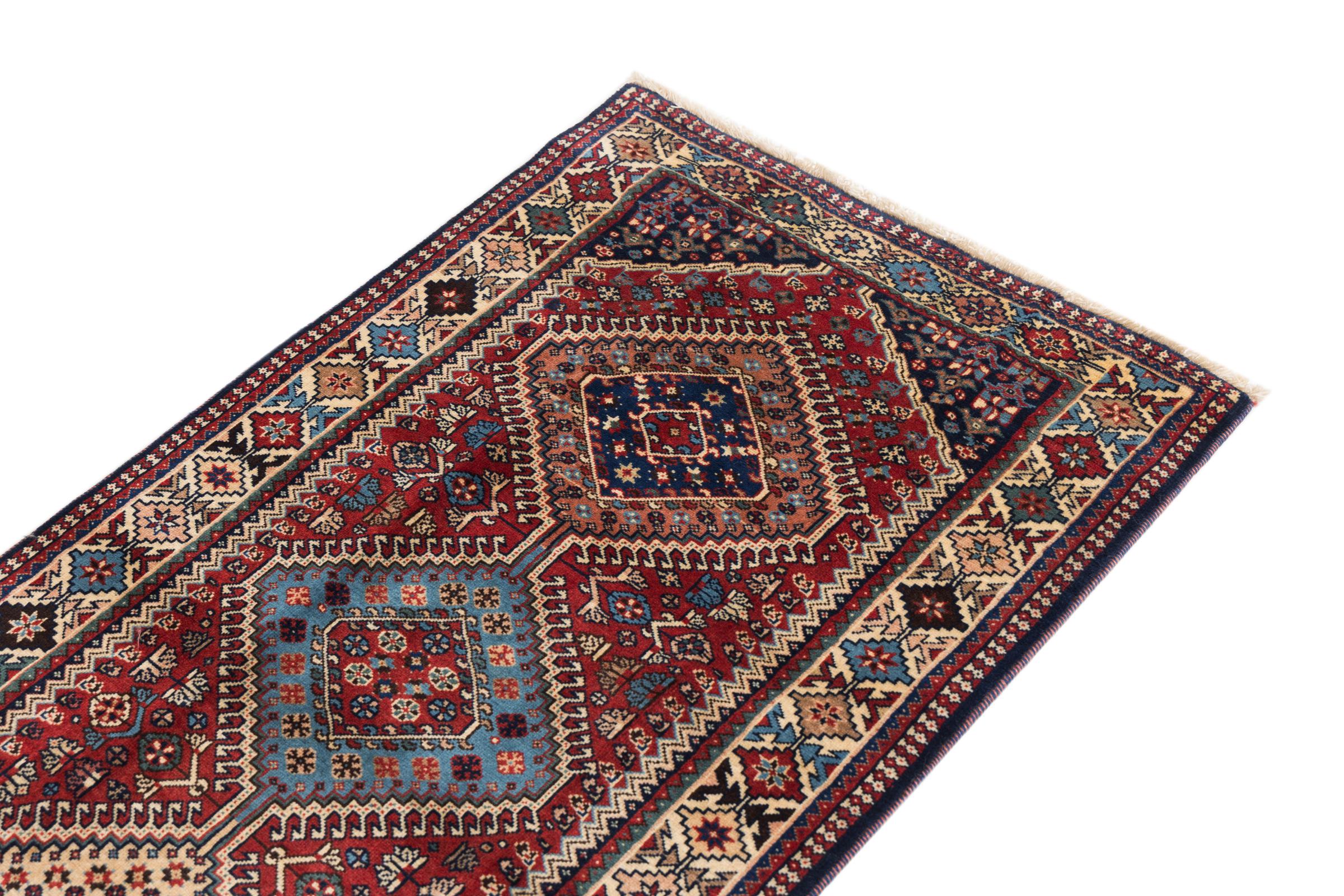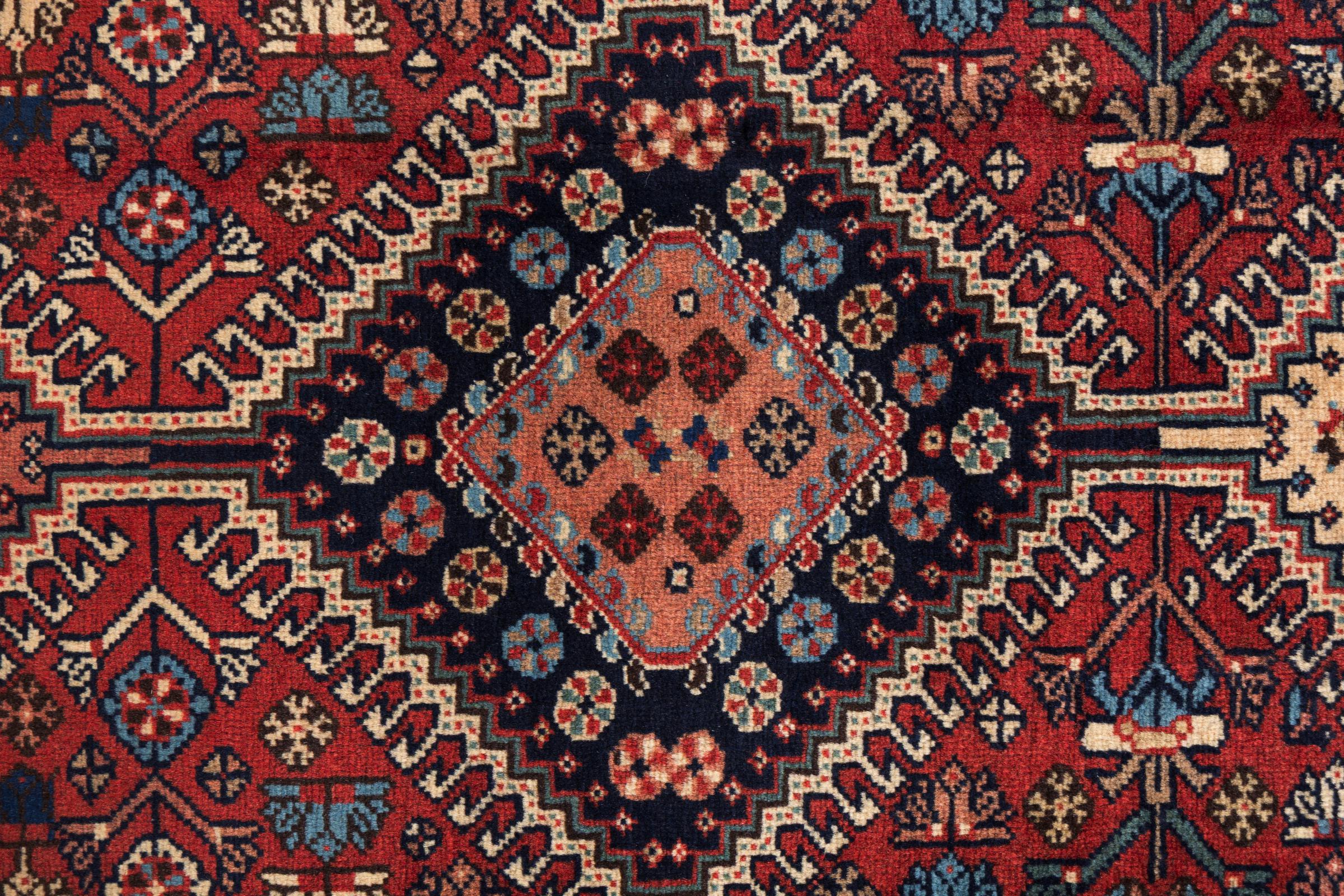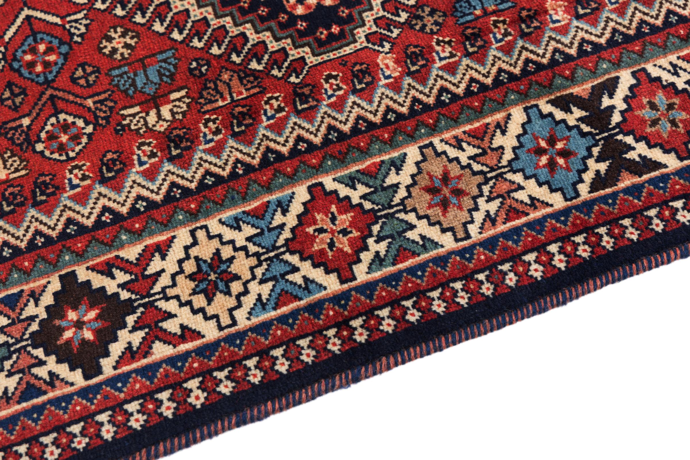 Tradicionalmente hecha a mano en Yalameh, esta alfombra persa es una bella representante de su gremio. Las formas geométricas son intemporales y seguirán siendo un diseño muy popular durante muchos años. Particularmente especiales en Yalameh son los diamantes, como en esta alfombra.