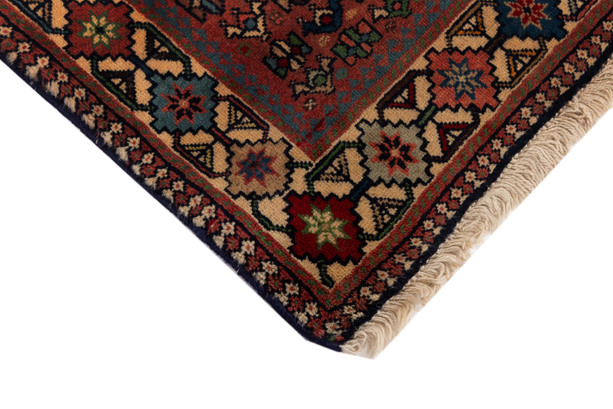 Tradicionalmente hecha a mano en Yalameh, esta alfombra persa es una bella representante de su gremio. Las formas geométricas son intemporales y seguirán siendo un diseño muy popular durante muchos años. Particularmente especiales en Yalameh son los diamantes, como en esta alfombra.