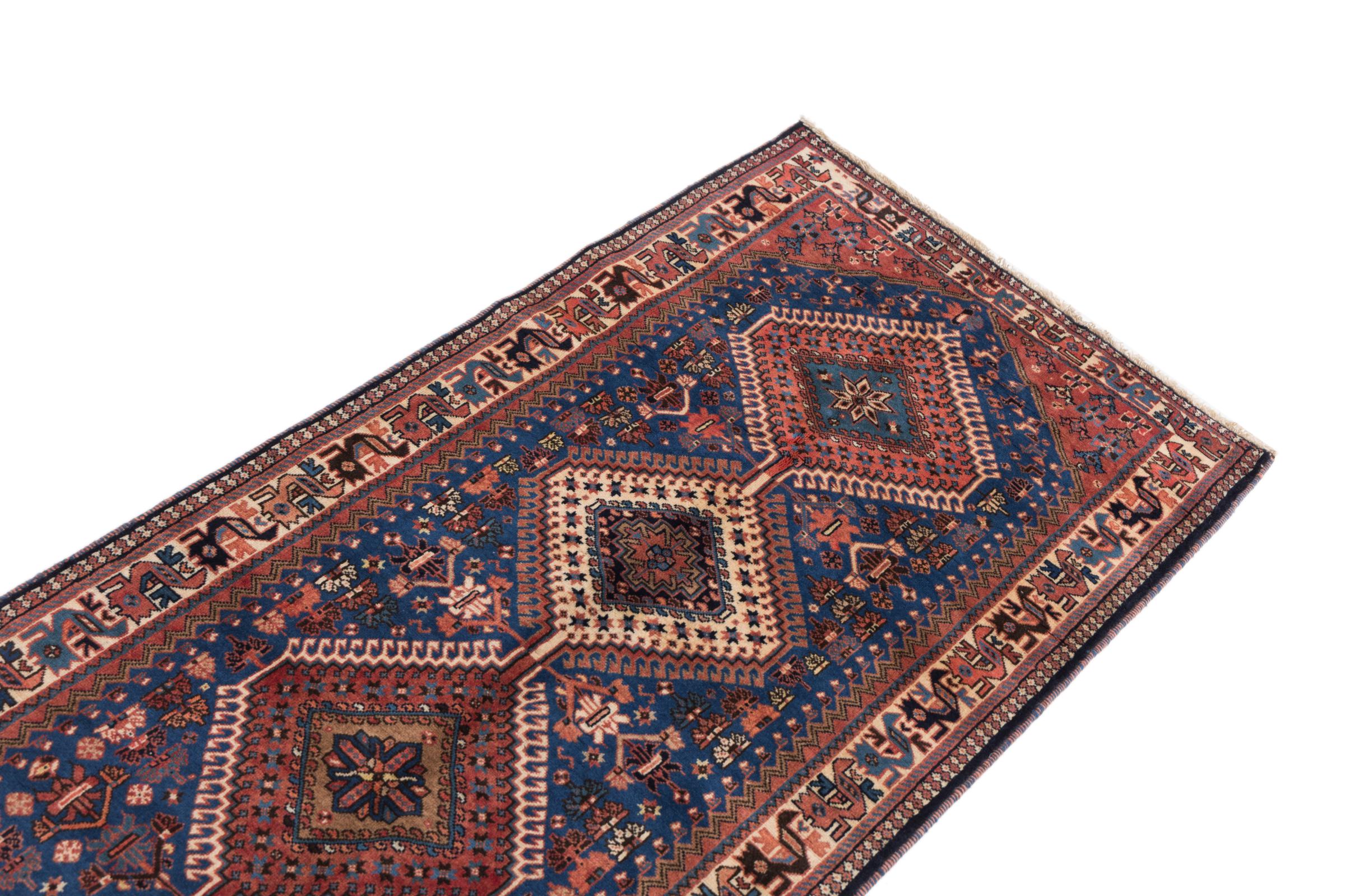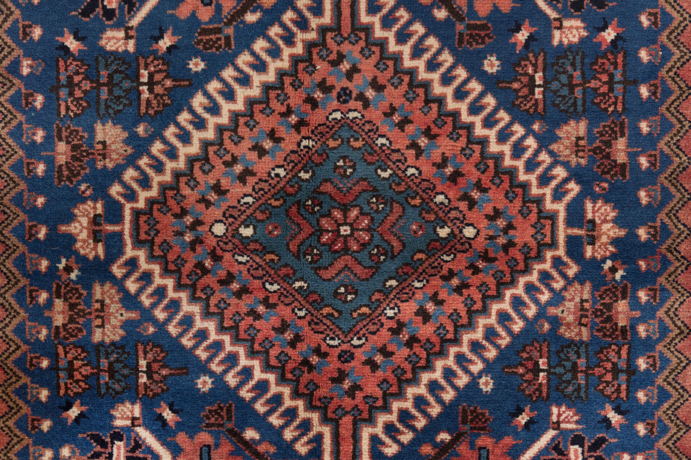 Tradicionalmente hecha a mano en Yalameh, esta alfombra persa es una bella representante de su gremio. Las formas geométricas son intemporales y seguirán siendo un diseño muy popular durante muchos años. Particularmente especiales en Yalameh son los diamantes, como en esta alfombra.