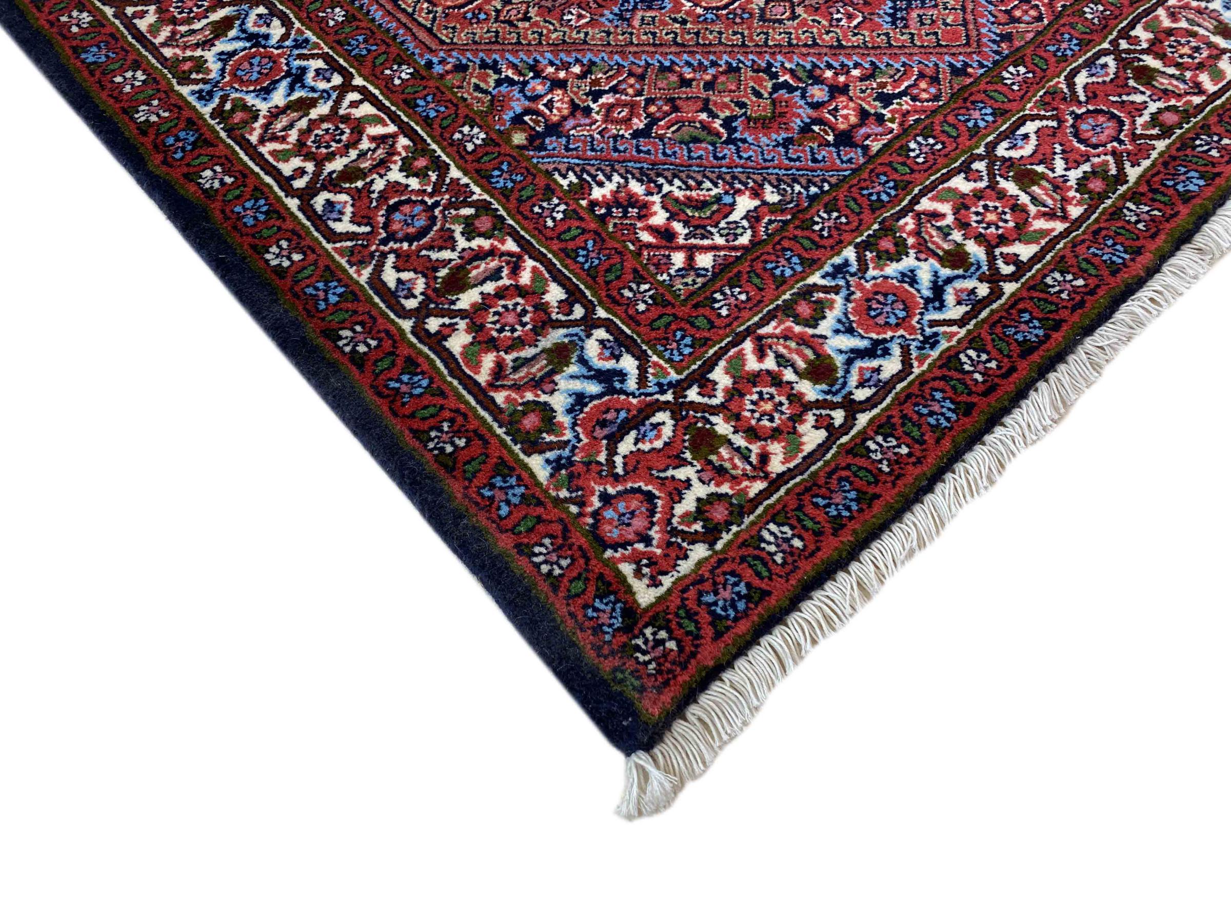 Esta alfombra pertenece a alfombras de pueblos y nómadas de Irán, antiguamente Persia. Este tipo de alfombra se anuda a mano en ciudades y pueblos más pequeños según la antigua tradición. Incluso los nómadas siguen anudando alfombras persas al aire libre. Las alfombras están anudadas sin un patrón y completamente desde la cabeza. Se caracterizan por los ornamentos clásicos, que están dispuestos en patrones rectos y geométricos. Gracias a su origen cultural-tradicional, estas alfombras tienen un carácter único que encarna la antigua Persia.
