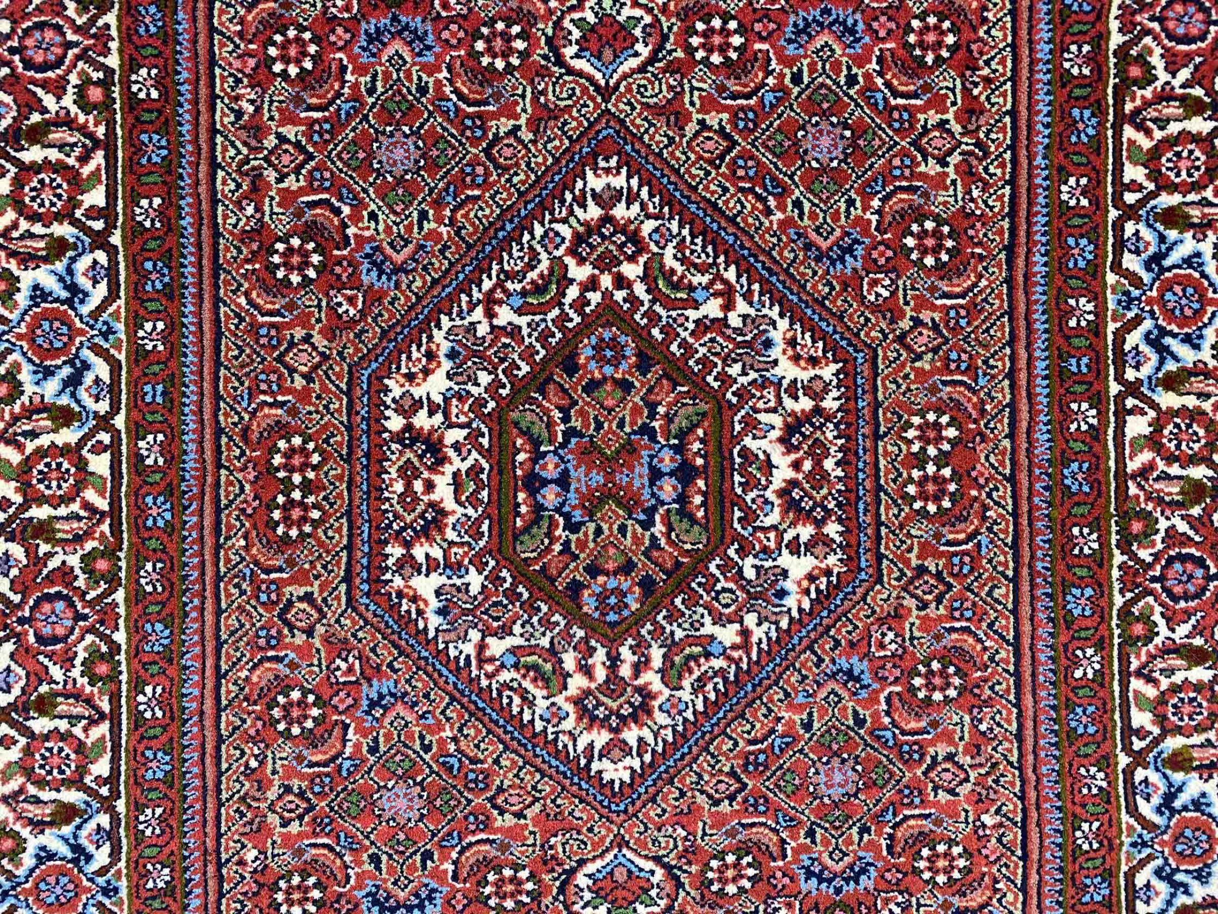 Esta alfombra de Sandjan anudada a mano es muy robusta y puede usarse en todo tipo de situaciones, como por ejemplo en la habitación o en el salón. Esta alfombra persa fue anudada a mano en la ciudad de Sandjan. La alta calidad es visible.