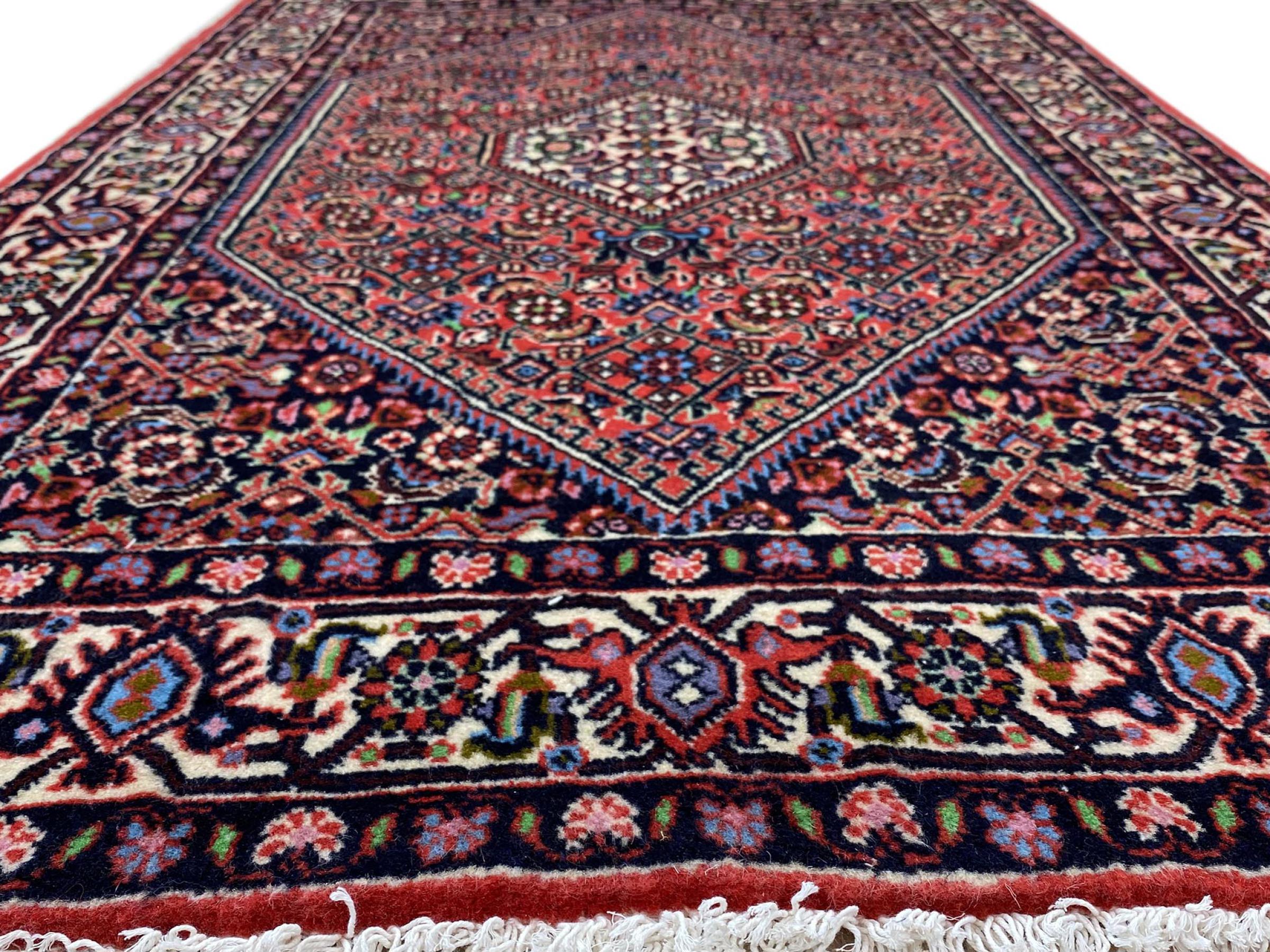 Esta alfombra de Sandjan anudada a mano es muy robusta y puede usarse en todo tipo de situaciones, como por ejemplo en la habitación o en el salón. Esta alfombra persa fue anudada a mano en la ciudad de Sandjan. La alta calidad es visible.