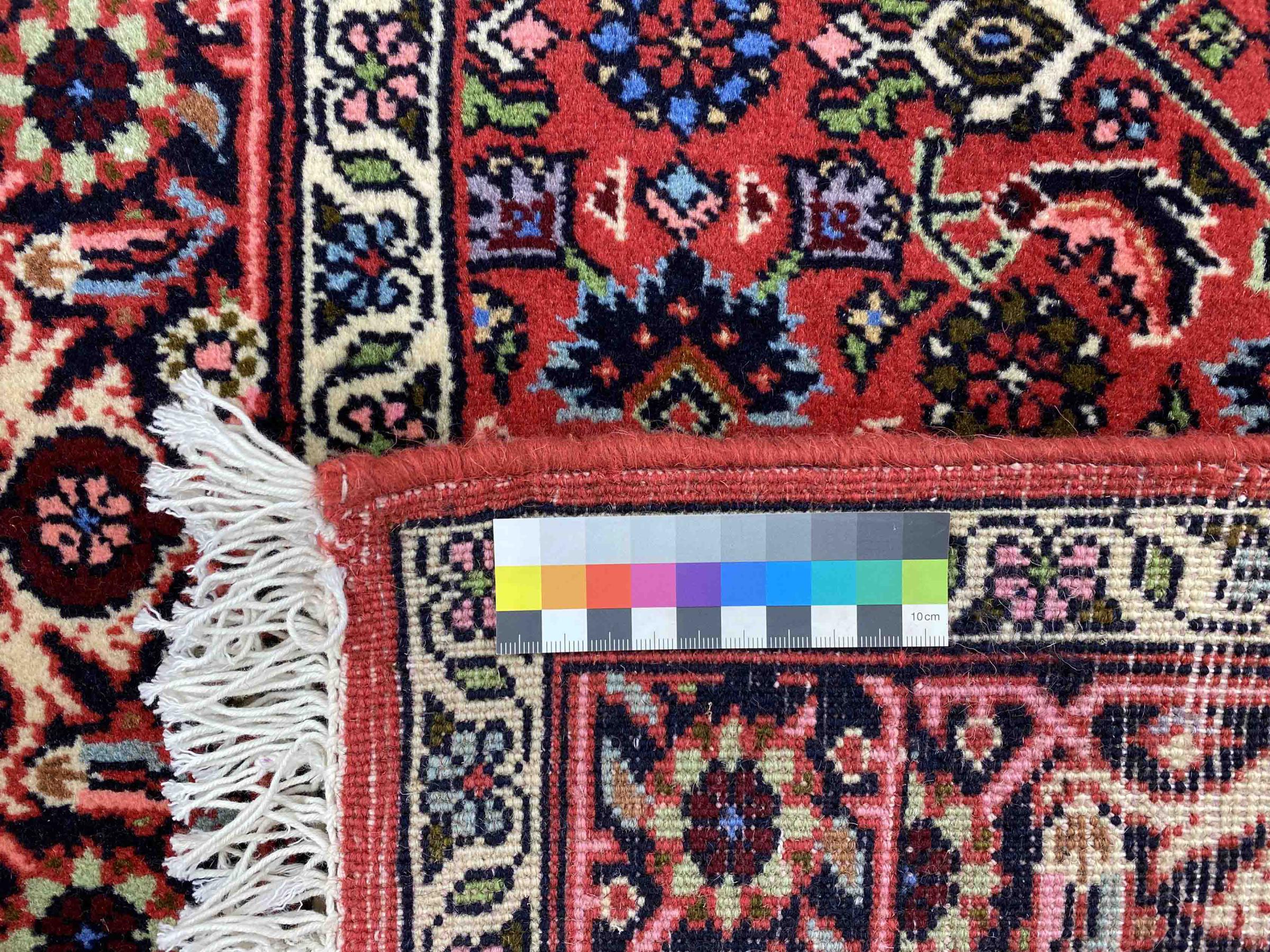 Esta alfombra pertenece a alfombras de pueblos y nómadas de Irán, antiguamente Persia. Este tipo de alfombra se anuda a mano en ciudades y pueblos más pequeños según la antigua tradición. Incluso los nómadas siguen anudando alfombras persas al aire libre. Las alfombras están anudadas sin un patrón y completamente desde la cabeza. Se caracterizan por los ornamentos clásicos, que están dispuestos en patrones rectos y geométricos. Gracias a su origen cultural-tradicional, estas alfombras tienen un carácter único que encarna la antigua Persia.