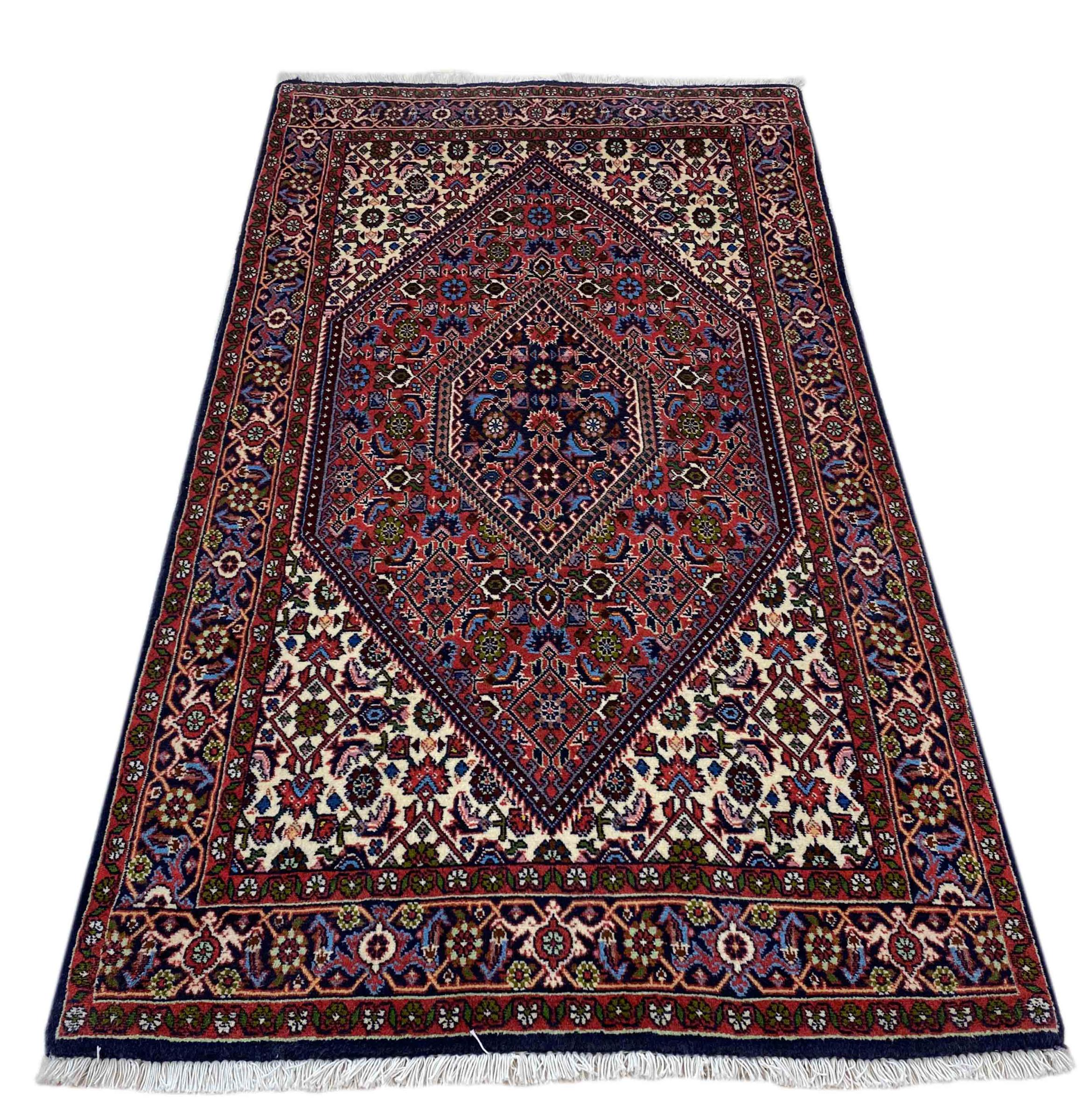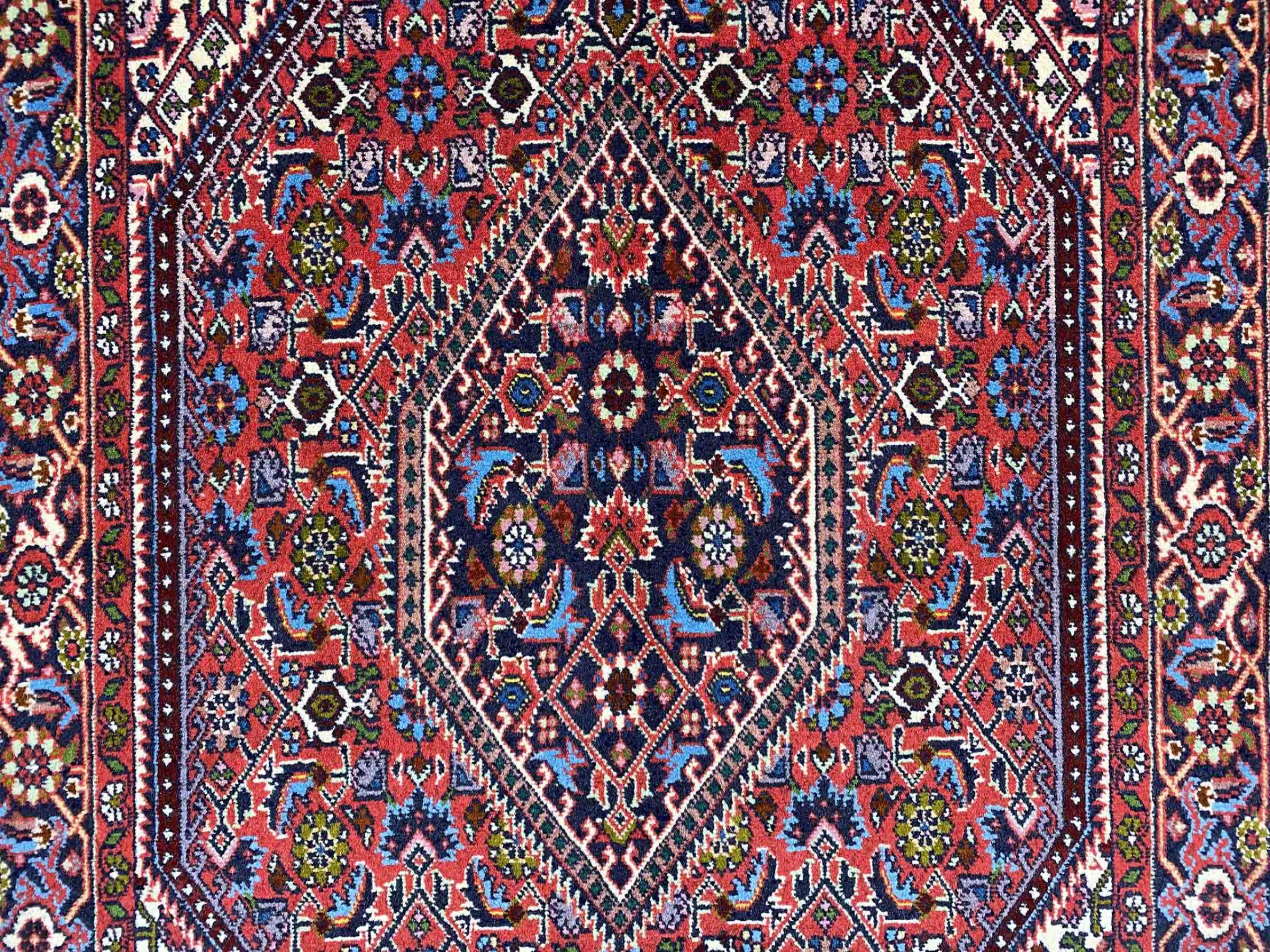Esta alfombra pertenece a alfombras de pueblos y nómadas de Irán, antiguamente Persia. Este tipo de alfombra se anuda a mano en ciudades y pueblos más pequeños según la antigua tradición. Incluso los nómadas siguen anudando alfombras persas al aire libre. Las alfombras están anudadas sin un patrón y completamente desde la cabeza. Se caracterizan por los ornamentos clásicos, que están dispuestos en patrones rectos y geométricos. Gracias a su origen cultural-tradicional, estas alfombras tienen un carácter único que encarna la antigua Persia.