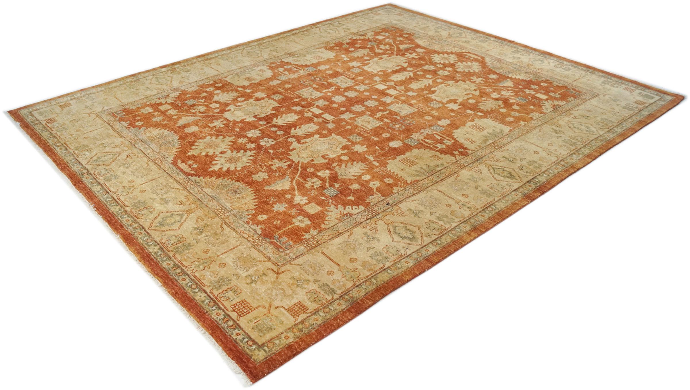 Las alfombras Ziegler Farahan se anudan a mano con lana de alta calidad en Pakistán / Afganistán. La lana de oveja tiene un contenido de grasa natural que protege adicionalmente la alfombra del desgaste diario. El método de tratamiento especial de estas alfombras consigue una hermosa y moderna pátina vintage. La alfombra se modeló a partir de alfombras persas tradicionales y se trajo a la era moderna junto con elementos de diseño modernos. El resultado son unas alfombras Ziegler muy populares y de gran calidad que encajan perfectamente en los conceptos modernos de diseño de interiores.