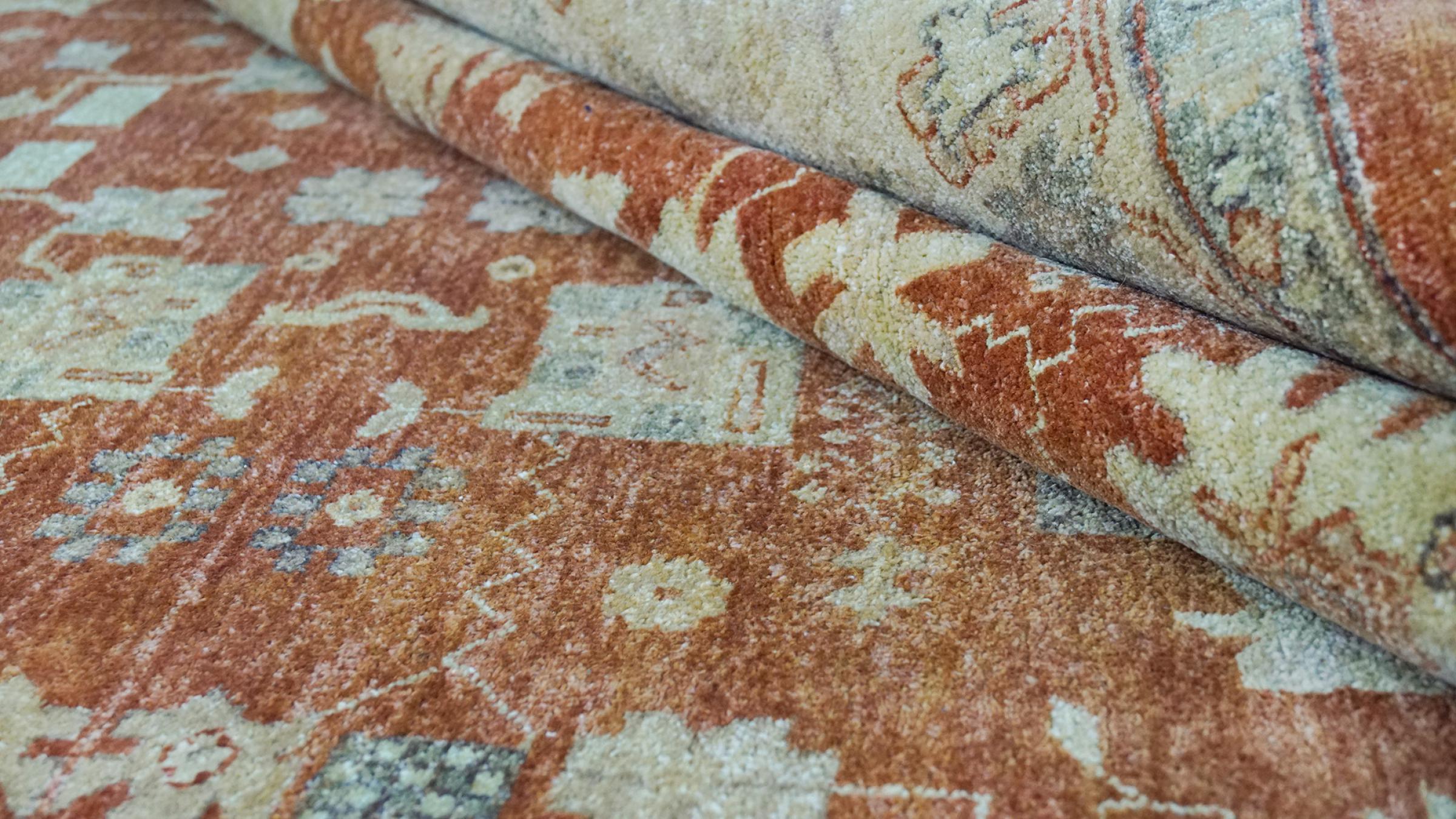 Esta alfombra está hecha de lana de oveja hilada a mano de la más alta calidad. Especialmente en Irán (antigua Persia), la lana de Afganistán y Pakistán sigue siendo hilada a mano antes de que comience el anudado de la alfombra. La lana ha demostrado ser un material natural y extremadamente resistente a lo largo de los siglos. Entre otras cosas, tiene propiedades repelentes de la suciedad y aislantes del calor. Al mismo tiempo, la lana es incomparablemente suave y tiene un brillo natural.