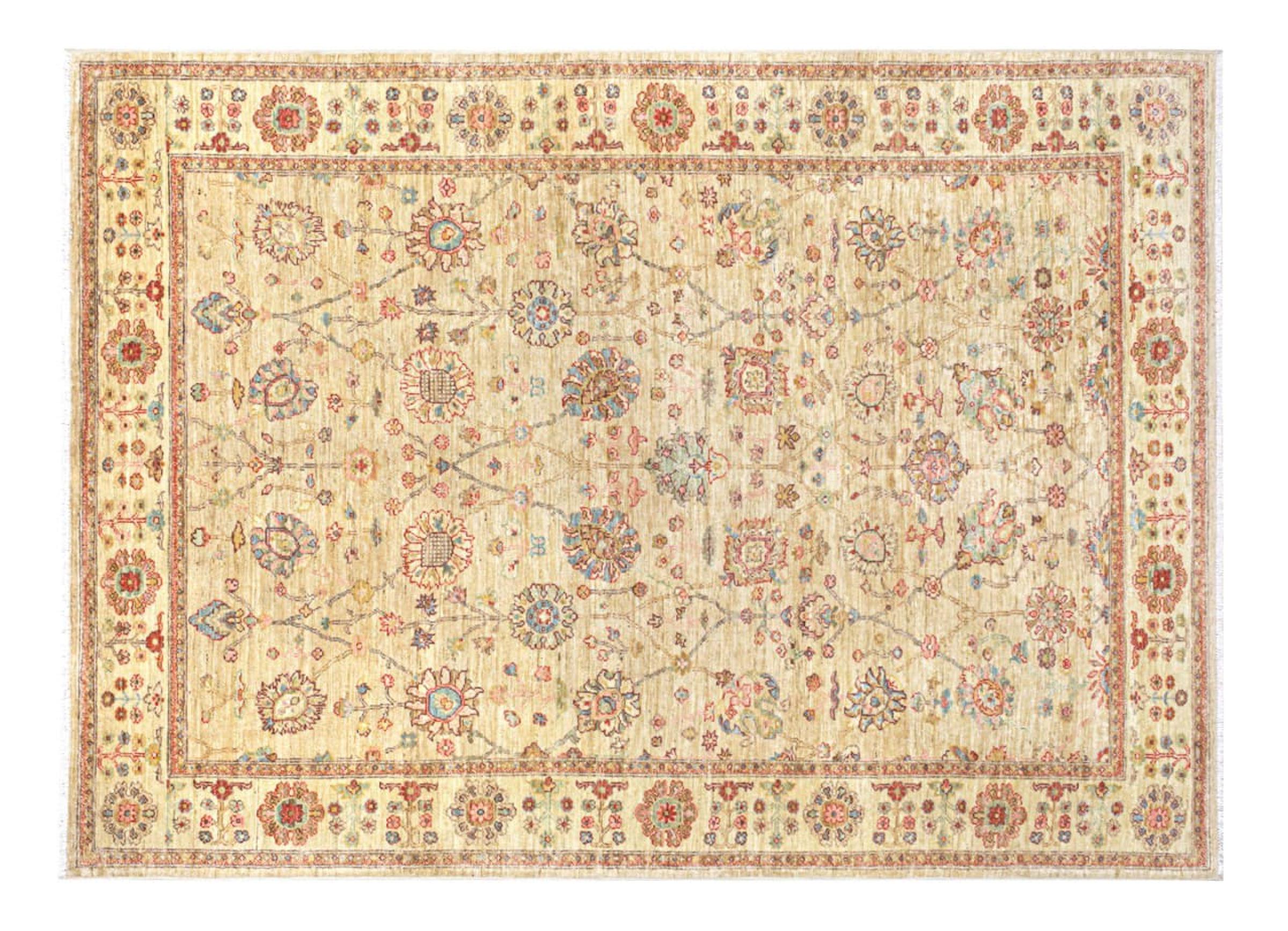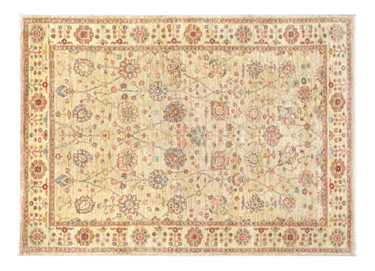 Esta alfombra está hecha de lana de oveja hilada a mano de la más alta calidad. Especialmente en Irán (antigua Persia), la lana de Afganistán y Pakistán sigue siendo hilada a mano antes de que comience el anudado de la alfombra. La lana ha demostrado ser un material natural y extremadamente resistente a lo largo de los siglos. Entre otras cosas, tiene propiedades repelentes de la suciedad y aislantes del calor. Al mismo tiempo, la lana es incomparablemente suave y tiene un brillo natural.