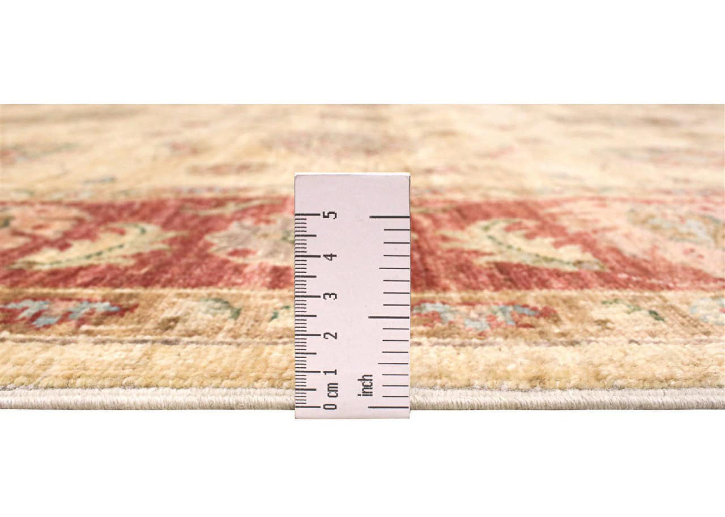 Esta alfombra está hecha de lana de oveja hilada a mano de la más alta calidad. Especialmente en Irán (antigua Persia), la lana de Afganistán y Pakistán sigue siendo hilada a mano antes de que comience el anudado de la alfombra. La lana ha demostrado ser un material natural y extremadamente resistente a lo largo de los siglos. Entre otras cosas, tiene propiedades repelentes de la suciedad y aislantes del calor. Al mismo tiempo, la lana es incomparablemente suave y tiene un brillo natural.
