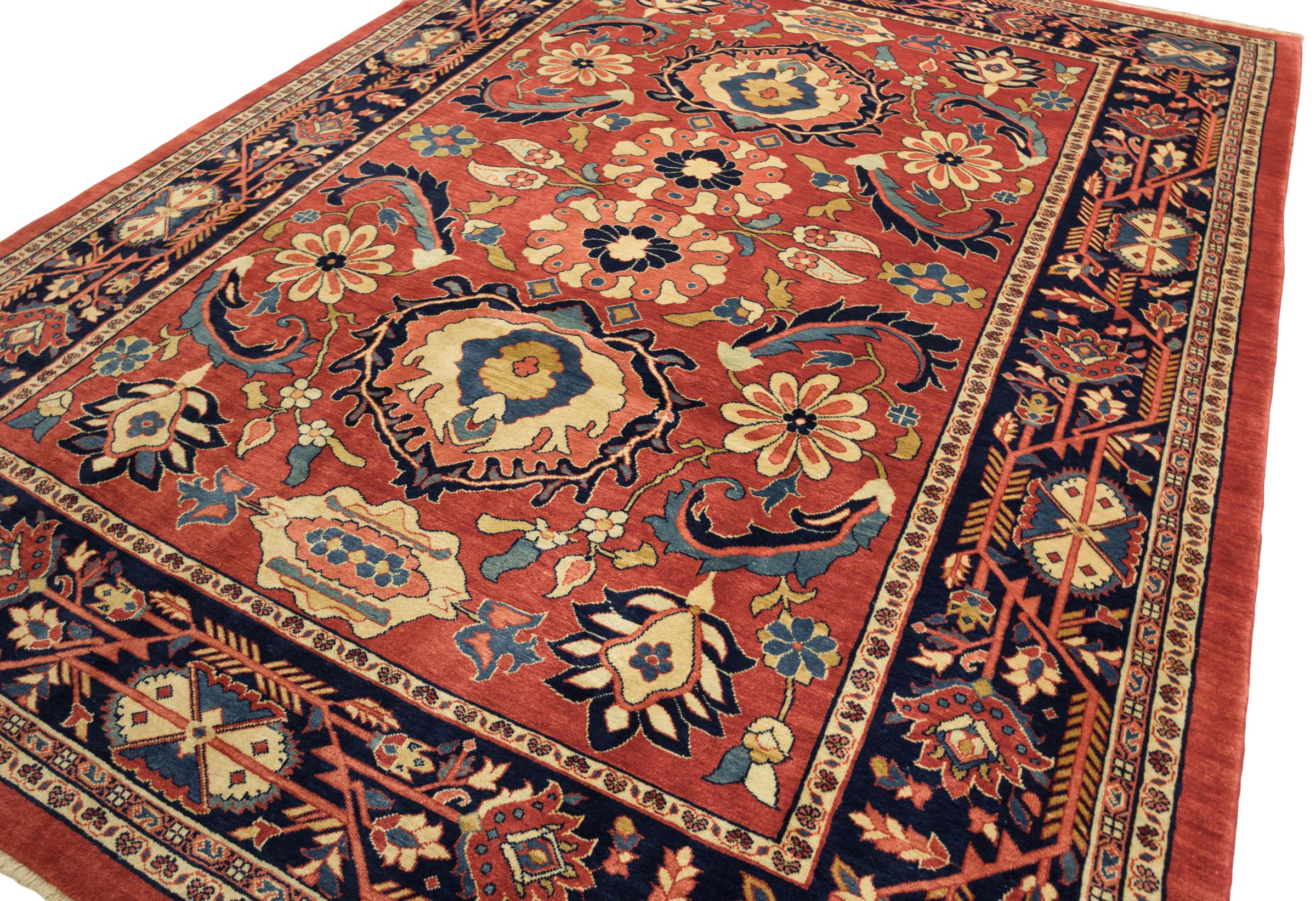 Esta alfombra anudada a mano del Farahan persa cumple las expectativas de los verdaderos amantes de las alfombras. Sus motivos persas y su pelo de primera clase atestiguan la alta calidad y el ojo para el detalle de hábiles tejedores. En Inglaterra, las alfombras persas de Farahan se consideraban una "alfombra de caballero".