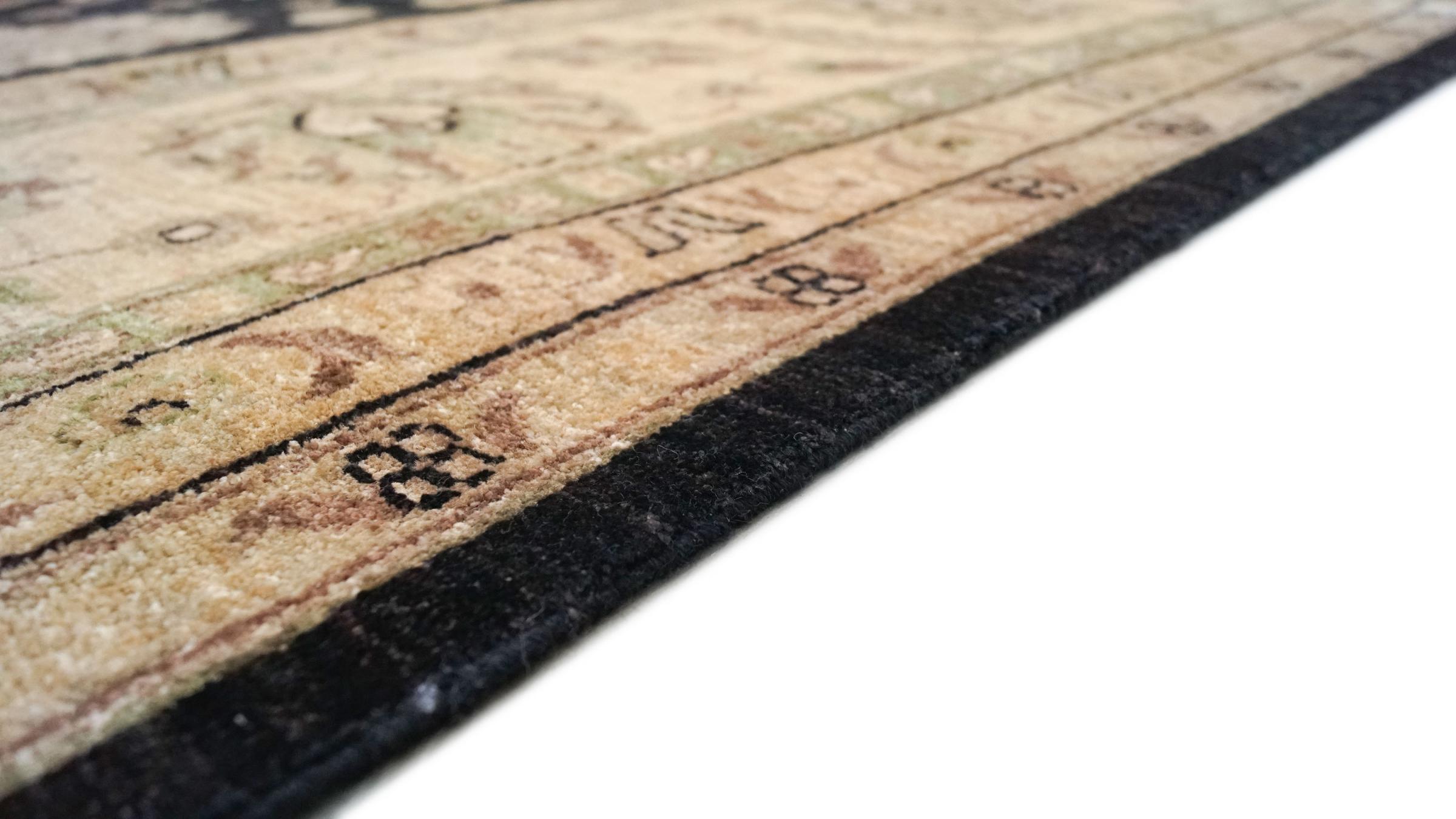 Esta alfombra está hecha de lana de oveja hilada a mano de la más alta calidad. Especialmente en Irán (antigua Persia), la lana de Afganistán y Pakistán sigue siendo hilada a mano antes de que comience el anudado de la alfombra. La lana ha demostrado ser un material natural y extremadamente resistente a lo largo de los siglos. Entre otras cosas, tiene propiedades repelentes de la suciedad y aislantes del calor. Al mismo tiempo, la lana es incomparablemente suave y tiene un brillo natural.
